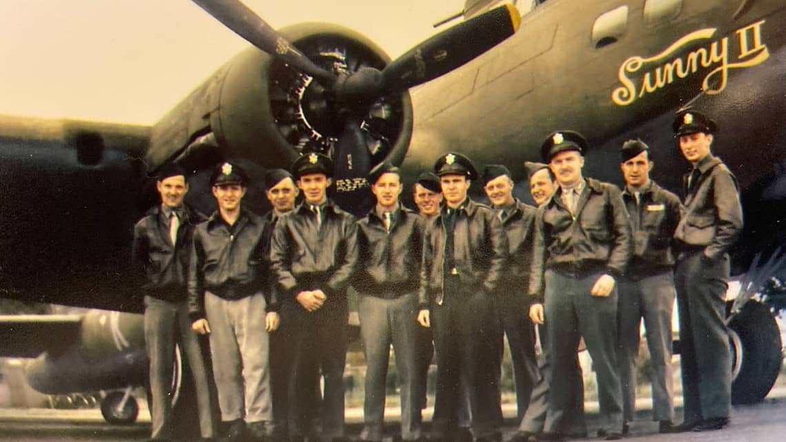 Lucky’s time finally arrived following the attack on Pearl Harbor on December 7, 1941. Like many other young men, he immediately volunteered for service, but due to the influx of volunteers, he had to wait to be called into service. Finally, in May 1942, he was called into the US Army as an aviation cadet to begin training. He began his flight training with PT-17s in Florida, followed by BT-13s in South Carolina. In February 1943, Lucky graduated and, in March, was assigned to the 100th Bombardment Group stationed in Kearney, Nebraska, for advanced training. There, he was placed in the 351st Bomb Squadron as a replacement co-pilot aboard a Boeing B-17, quickly falling in love with the bomber.