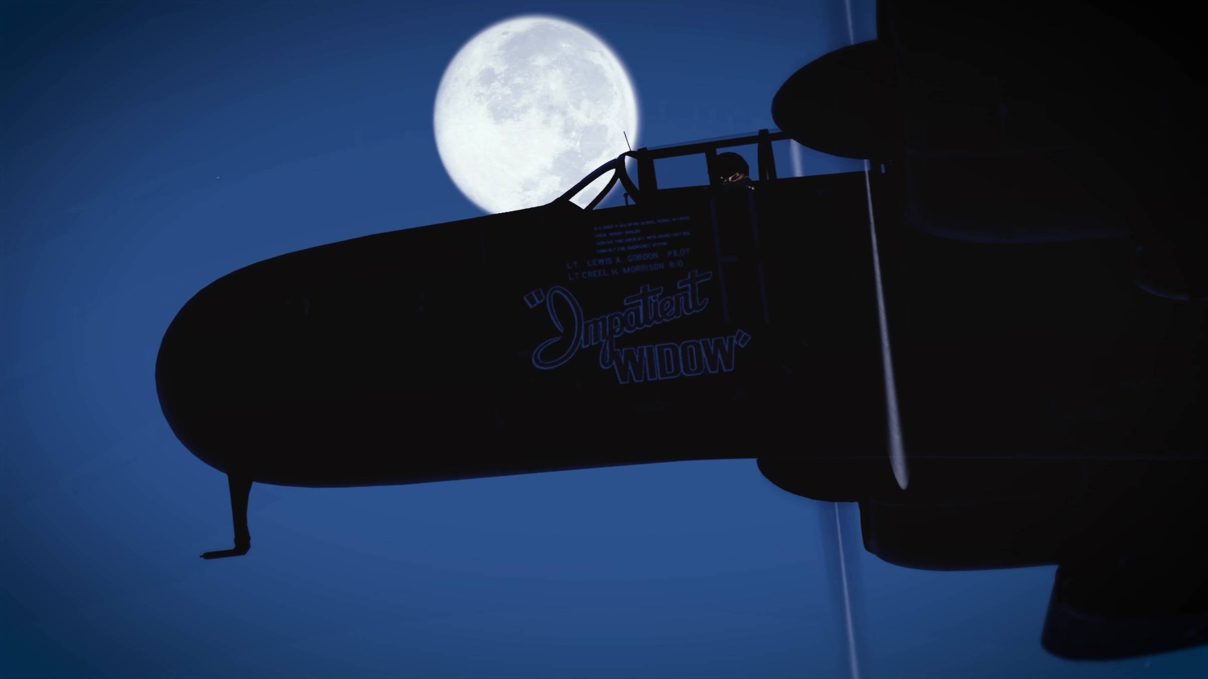 P-61 "Impatient Widow" can be seen under a full moon. While cinematically appealing, this would have actually been less than ideal for night hunters.
